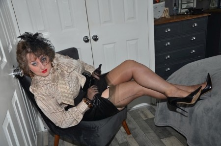 A bonus set of pics for you from a few years ago i found on my computer i thought you would like to see them. Dressed as your personal secretary in a lovely pair of rare fully fashioned stockings with zig zag heel detail , silk blouse and a lovely cream full slip. I really should be doing spreadsheets but all i want to do is spread my pussy and feel your hard cock inside of me . You are a naughty boss to work for! 190 pics