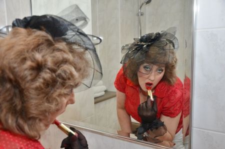 I checked myself into a local hotel for an afternoon of naughty fun,dressed in a lovely red and black silk blouse and satin skirt and chocolate cervin fully fashioned stockings. If only you were there to watch me fuck my pussy with my dildo, i,m sure you would love to have joined in and licked my wet pussy.I came home to my husband and told him what a boring day it had been so i took him outside into the garden and sucked him off swallowing all of his spunk, little did he know i was thinking of you. 191 pics video 15:54mins