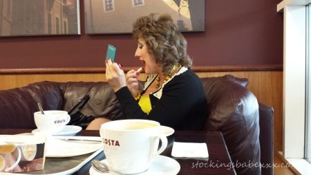 Another pair of new shoes this week, a lovely pair of tan heels with spikey studs, also a rare pair of bronze gios with a black seam and sheer black french knickers.after some naughty fun at my local hotel for with hubby i was desperate for something appertising to eat but the menu was so disappointing, so i asked the manager for something special. I was to meet him in the hotel car park where he had something off the menu for me .Watch the video as i suck him off and he fills my mouth with the best desert i,ve ever tasted !!! video 17.52 mins 163 pics